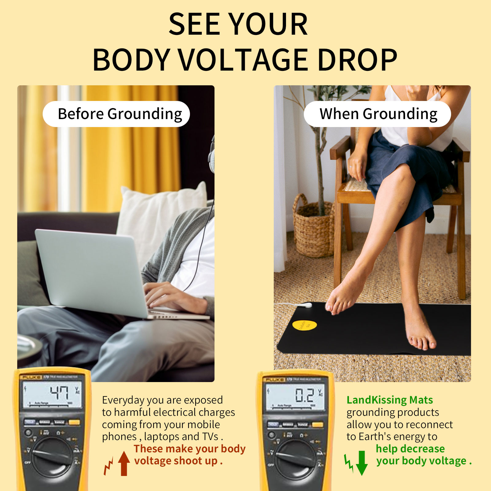 LandKissing Mats are setting up in three easy steps to ensure your grounding experience and performance. Detailed instrustion can be found in packaging box.